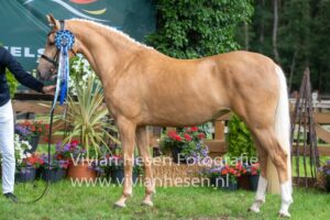 De palomino Keizerskroon Highlight (Pippin’s Pride A.T. x Verona’s Bo-Gi) is van fokker A. de Graaf-Spruijt uit Strijen. De stermerrie is gedekt door Nieuwmoed’s Mister Right. “Een talentvolle pony. Netjes voorgesteld”, was het commentaar van de jury.