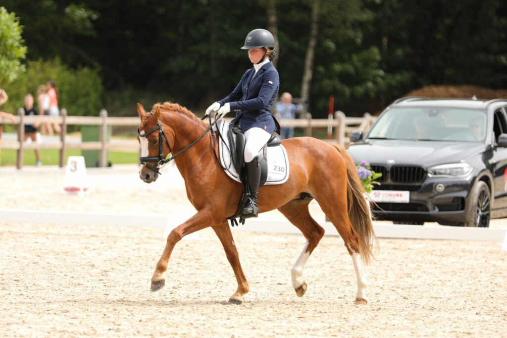 We hebben Oosting Alexander gekocht in maart 2021. Hij was op dat moment L dressuur gestart en had geen ervaring in de springsport. Samen zijn we begonnen in het L1 met succes, we mochten naar de Brabantse kampioenschappen. Daar hebben we een 2de plaats behaald en zijn we afgevaardigd naar de Nederlandse kampioenschappen. Hier ook een mooie proef neer kunnen zetten die beloond werd met een 3de plaats. Met de kampioenschappen achter de rug gingen we starten in het L2. Deze klassen hebben we snel uitgereden en zijn toen gelijk doorgegaan in het M1. We mochten in deze klasse onszelf ook weer laten zien op de Brabantse kampioenschappen, met als resultaat een 4de plaats en afgevaardigd naar de Nederlandse kampioenschappen. Daar hebben we in een sterk deelnemersveld een 15de plaats behaald. Na ook deze kampioenschappen weer achter onze rug te hebben gelaten zijn we door gegaan naar het M2. Deze klasse hebben we ook snel uitgereden zodat we in het Z1 konden gaan starten om daar veel ervaring in op te gaan doen. We hebben tot nu toe in het Z1 4 winstpunten gehaald. Parallel aan de dressuur zijn we ook bij het springen uitgekomen. In de klasse 90 cm werden we afgevaardigd naar de Brabantse kampioenschappen en behaalde daar een 26ste plaats. Momenteel zijn we gestart in de klasse 1.00 m. Oosting Alexander is een leergierige pony met een heel lief karakter! Alex is opgeleid en wordt gereden door Myrne Lutters.