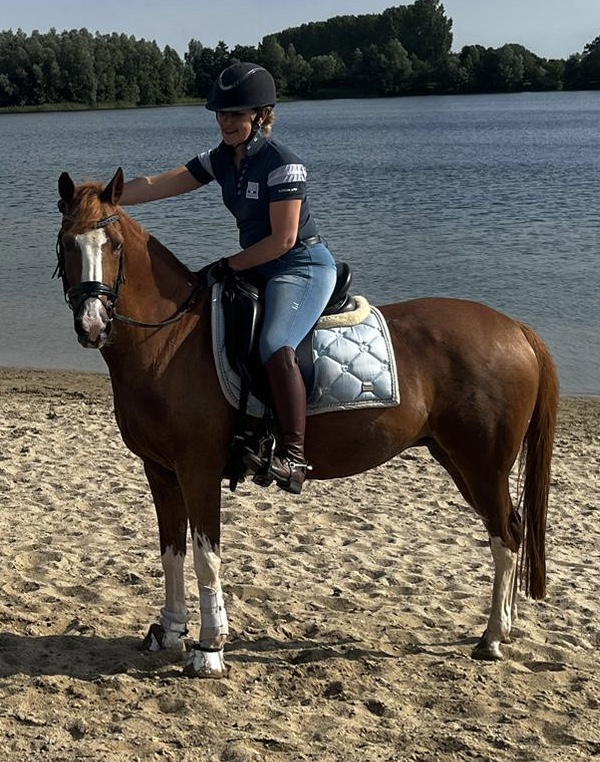 Deze 24-jarige welsh schimmel merrie woont inmiddels 3.5 jaar bij ons. Haar beste maatje en baasje is Lauren Ceelen. Suzy is erg eigenzinnig ze geeft precies aan wat ze wil. Ze is gek op veel gras en paardenkoekjes en veel knuffels van ons. Ze maakt graag bakjes of deuren open om op onderzoek te gaan. Ze kijkt ook dan precies zo schattig zodat boos worden op haar onmogelijk is. Suzy is nog steeds erg fanatiek in de sport. Dressuur rijden vind ze het minst leuk. Springen en Crossen vind ze het mooiste om te doen. Oren naar voren en gaan. Deze pony gaat voor je door het vuur. En brengt zoveel gezelligheid mee. Het is nooit saai met Suzy. Daarom verdiend ze deze nominatie. De foto is van SGW Ysselsteyn 2023. (Nanda Ceelen)