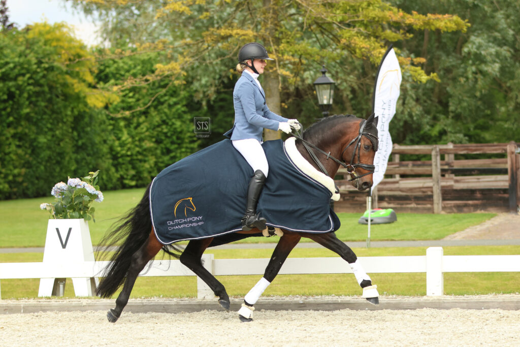 Tweede in deze rubriek werd de opvallende grulloruin Didgeridoo NE WE, een nakomeling van Kastanienhof Donnertrommler. Onder het zadel van Sophie van Norel verzamelde hij 80.5 punten. Alles werd met een acht beloond, behalve de harmonie: daar ontving de combinatie een 8.5. “Deze pony had heel veel kracht en balans,” vertelt Hans Peter Minderhoud. “Proeftechnisch was hij ook de sterkste in deze groep.”