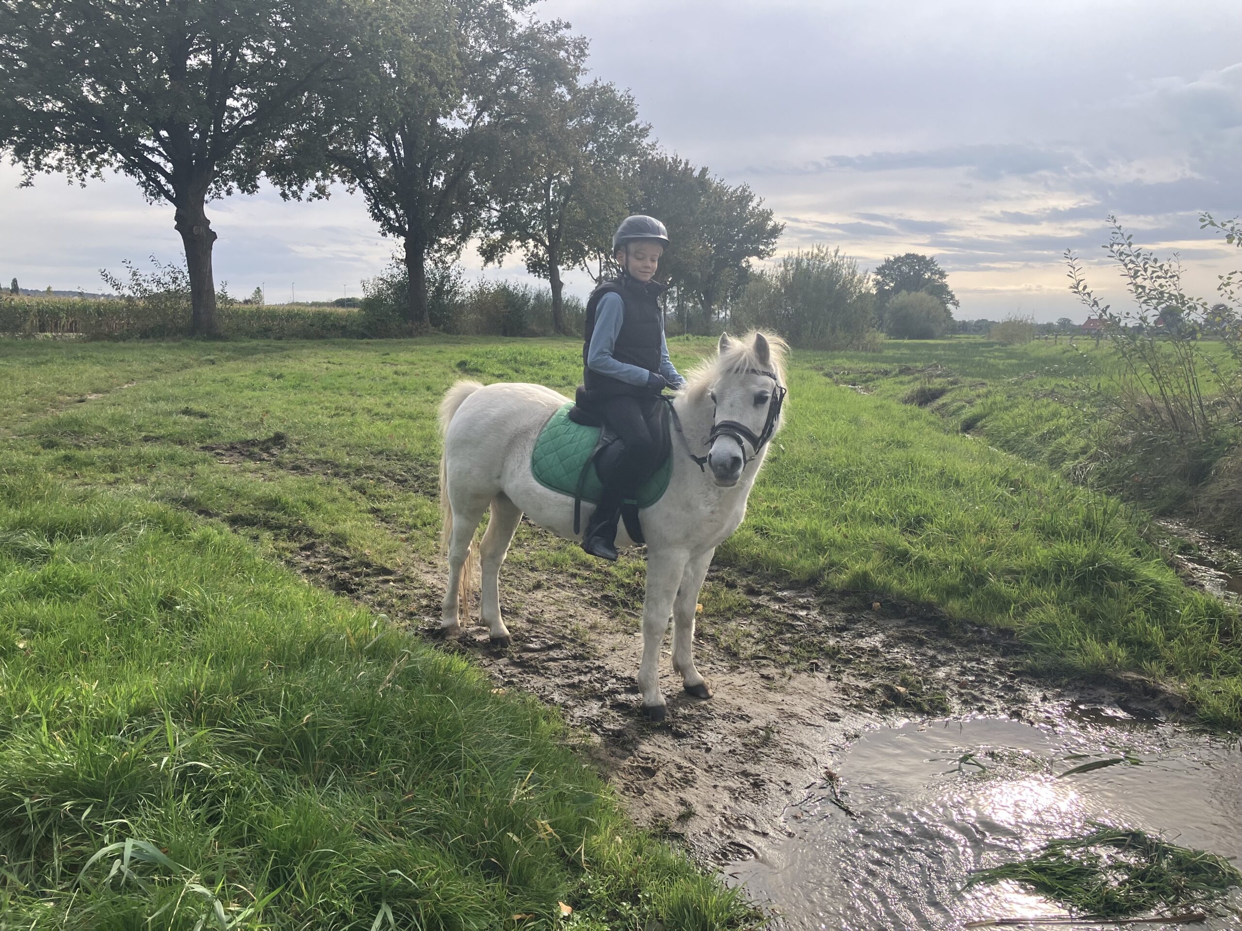 Graag stel ik jullie voor aan River, voor ons de állerleukste “oude welsh”. Ze is 26 jaar en heeft nog steeds een super goede conditie. Voor de kinderen die op haar leren rijden, is ze heel erg lief en geduldig. Meestal dan 😉. Ze is altijd wel rustig en betrouwbaar en soms een tikkeltje eigenwijs. Maar dat maakt haar nou juist zo leuk.