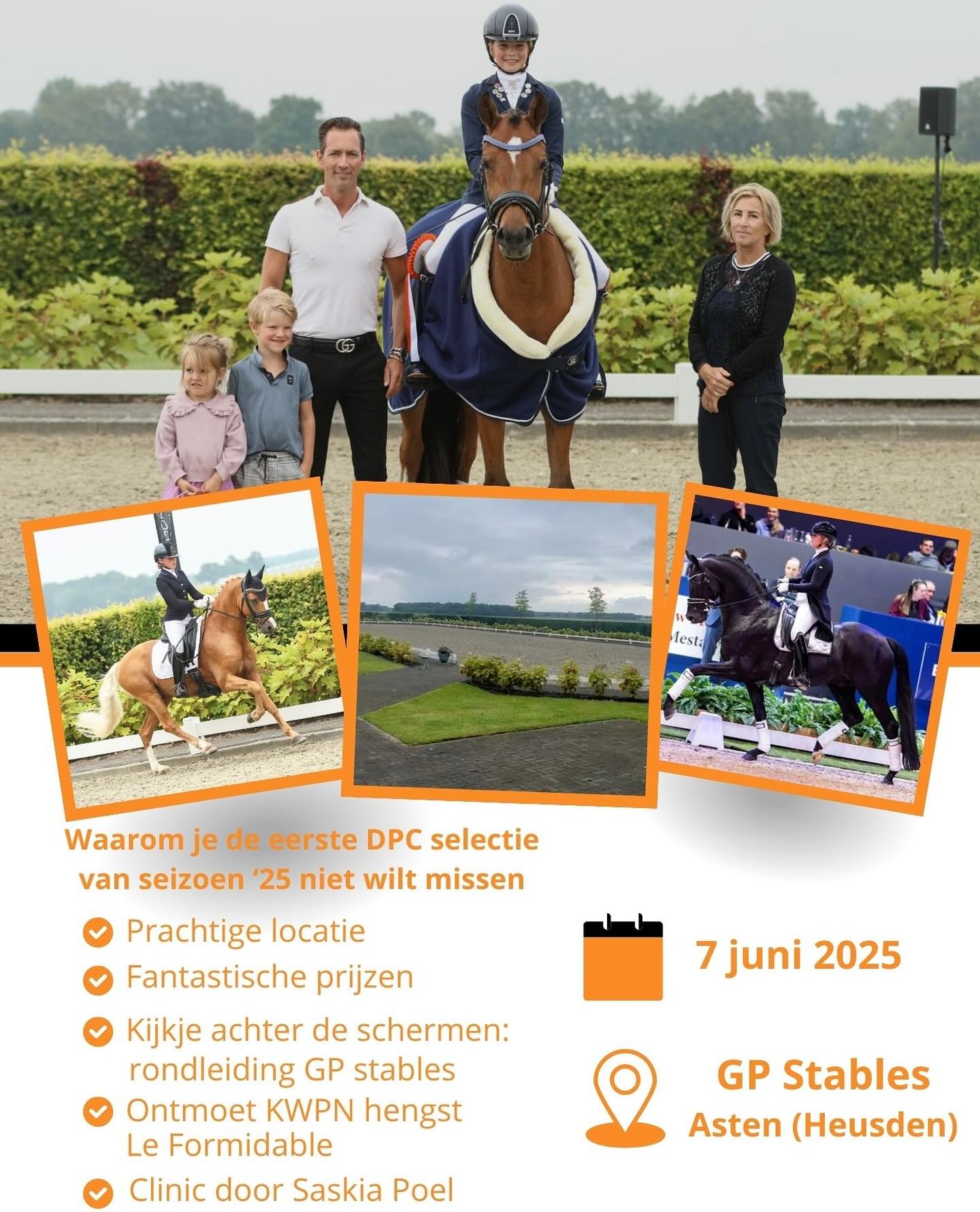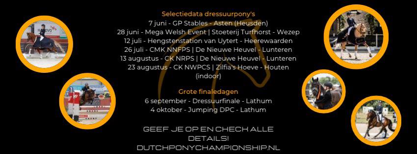 De selectiewedstrijden voor de dressuur starten begin juni en lopen door tot eind augustus. De dressuurfinale vindt plaats op 6 september in Lathum. Springcombinaties schrijven zich tzt direct in voor de Jumping DPC op 4 oktober, eveneens in Lathum.