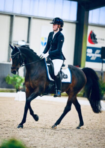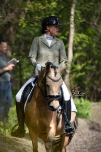 Het avontuur van Roosendaal’s Summertime en mij begon in 2023 toen Astrid mij vroeg om haar uit te brengen in de sport. Ik zat er voor de vierde keer op en we pakten meteen dikke winstpunten in de B-klasse. Vanaf daar ging het snel: we werden geselecteerd voor het Nederlands kampioenschap outdoor en stroomden door naar de L. Summer is een echte outdoor pony, en dus werden we in de zomer van 2024 met een 4e plek op de regionale opnieuw geselecteerd voor de Nederlandse Kampioenschappen in de klasse L2. Inmiddels zijn we flink gegroeid als combinatie; we hebben het sportpredikaat behaald en starten nu in het M2. De punten voor het Z zijn ook binnen dus we trainen met plezier verder Ik vind het heel leuk om samen met Summer nieuwe dingen te leren