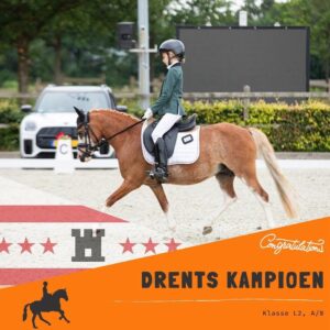 Al heel wat jaren genieten wij thuis volop van onze Welshpony’s. Toen vorig jaar de eerste Sectie A veulentjes bij ons werden geboren begon het toch wel te kriebelen om eens naar de keuring te gaan. Vorig jaar kreeg Hoekhorst Eclair een uitnodiging voor de CK. Eclair was al Ster toen wij haar kochten dus deden we een gooi naar het Keurpredicaat, wat is gelukt! Hierdoor werden we nog fanatieker en ging het al snel, wat als we proberen het Sportpredicaat te behalen. Eclair is mega leergierig en pakt dingen makkelijk op, dus de sport in was geen probleem. Ondertussen waren we opzoek naar een ruitertje om haar uit te brengen op concours. Deze hadden we al snel gevonden in Jaley van der Wetering! Het doel was L2 + 5 voor het sportpredicaat, maar als het allemaal zo makkelijk en goed gaat worden doelen al snel bijgesteld. Zo werd de selectiewedstrijd gereden welke ze wisten te winnen. Het weekend daarop werden ze Drents Kampioen L2 AB pony’s! Zo wist Jaley in een aantal wedstrijden Eclair naar het L2 + 7 te rijden. Daarmee heeft Eclair haar Sportpredicaat behaald én is ze Kroon geworden! Wij zijn Jaley en Dénise ontzettend dankbaar voor hun hulp hierbij!